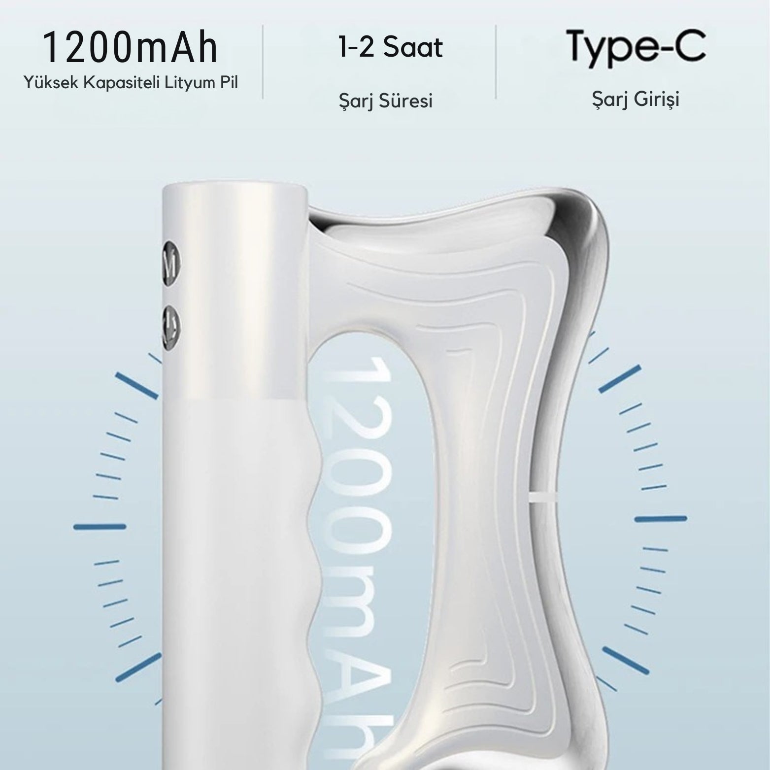 Tam şarj ile, seçilen yoğunluk seviyesine bağlı olarak 2–4 saat kullanım imkânı sunar. Ayrıca, kas dokusuna ideal süre uygulanmasını sağlamak için otomatik 10 dakikalık güvenli kullanım zamanlayıcısı bulunur.