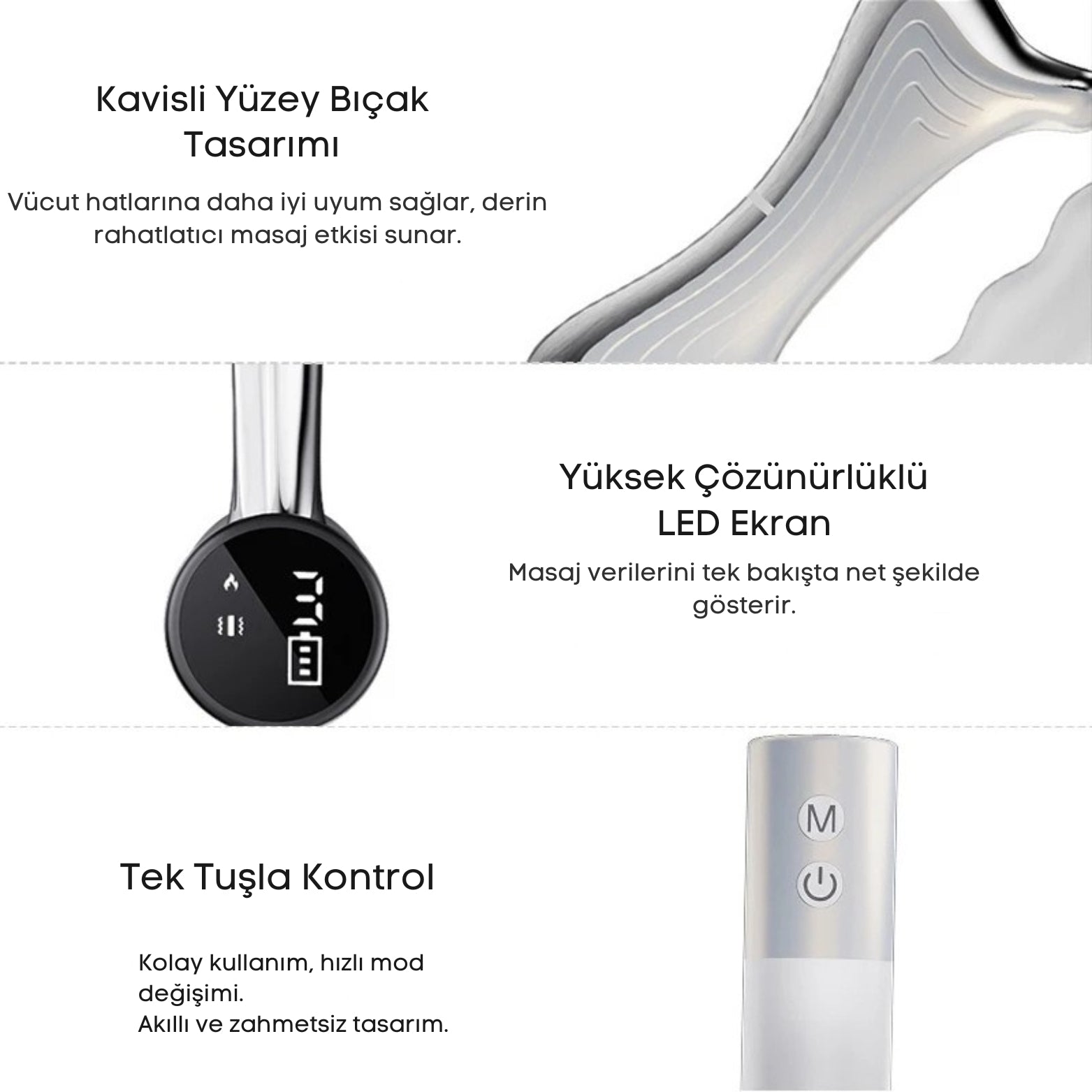 Kullanım sırasında hissedilen yoğunluk, uygulanan basınç ve seçilen moda göre değişebilir. Hafif bir uyarı veya baskı hissi normaldir. Gerekli durumlarda güç seviyesini ve basıncı ayarlayarak konforlu kullanım sağlayabilirsiniz.